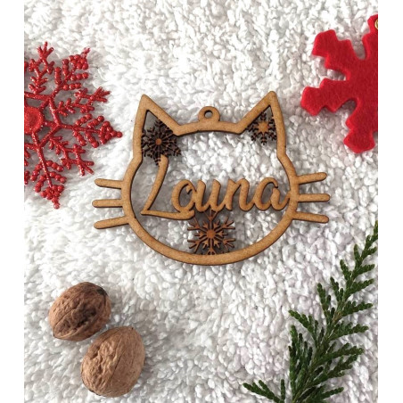 Boule de noël noel en bois prénom sapin personnalisable Personnalisé prénom animal chat chien animaux tête de chat ornements